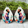 A pair of lightweight wooden components have whimsical images sublimated to the surface. Design is on the front and back. Hole is located at the top only. This jewelry component would make a beautiful pair of earrings or two charms. These components are prefect for customers who can only wear light weight earrings.