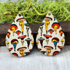 A pair of lightweight wooden components have whimsical images sublimated to the surface. Design is on the front and back. Hole is located at the top only. This jewelry component would make a beautiful pair of earrings or two charms. These components are prefect for customers who can only wear light weight earrings.